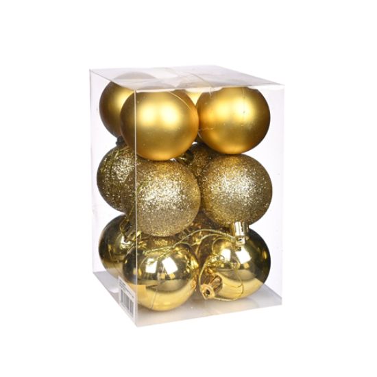5cm CHRISTMAS BAUBLES ASSORTED GOLD X 12pcs